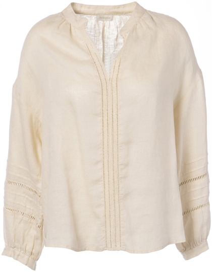Mooie klassiek zomerse zandkleurige linnen blouse met broderie anglaise van JC Sophie.