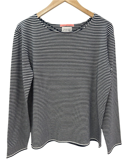 Superzacht blauw ecru gestreept shirt van The Shirt Project met een leuke boothals.