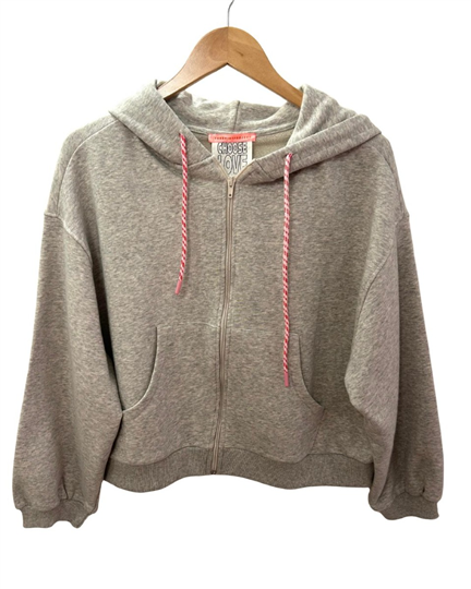 Heel leuk grijs melee hoodie vest van The Shirt Project met een leuk rood hartje op de muts.