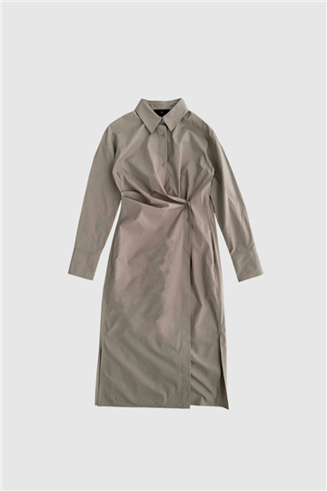 Hele gave stoere blouse jurk van With Black in vergrijs zand.