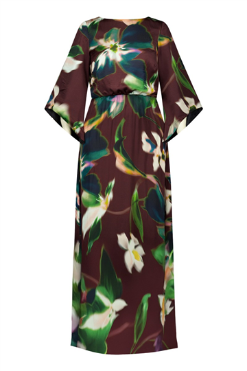 Prachtige lange jurk van Studio Anneloes in een multi color bruine print. Heel mooi voor bruiloften of ander feest.