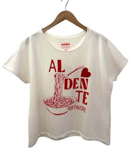 Hele leuke ecru kleurig t-shirt van sweater stof van The Shirt Project met rode print voorop. Het hartje is van teddy stof.