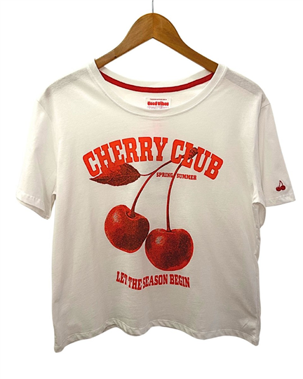Heel leuk zomers wit t-shirt met rode kersen van The Shirt Project.