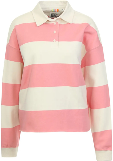 Super leuk “jaren 80”poloshirt met ecru en roze streep van The Shirt Project.