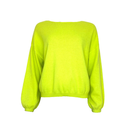 Hele leuke neon gele trui met boothals en lange puffy mouwen van Twins the Label.