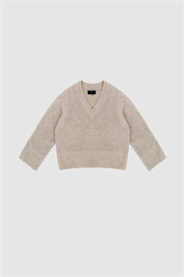 Heerlijke zachte wollige v-hals trui in zandgrijs van With Black.