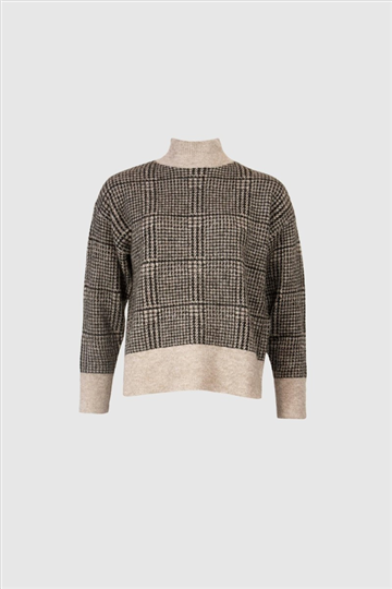 Super mooie zachte wollige trui met opstaande hals van With Black die wij graag combineren op de zwarte satijnen rok.